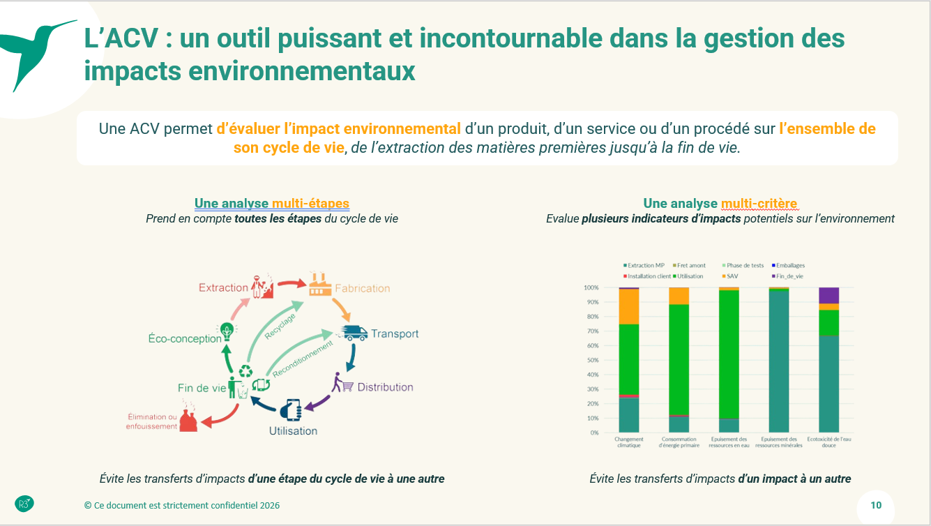 La réduction des “impacts négatifs sur l’environnement des produits, procédés ou services sur l’ensemble de leur cycle de vie” nous dit l’ADEME. Éco-concevoir ses produits et services, c’est donc favoriser une meilleure performance environnementale de son entreprise et s’inscrire dans une dynamique plus globale, celle d’une société et d’une économie face aux défis écologiques. En intégrant l'ACV dans leur stratégie RSE, les entreprises s'inscrivent dans cette démarche proactive pour un avenir plus durable.